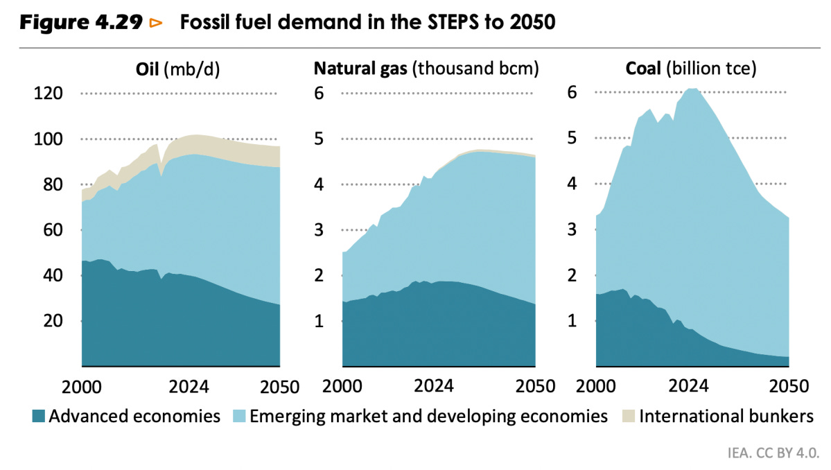 When the IEA first projected in 2023 that global demand for fossil fuels would peak this decade, much attention was paid to the notion of peak rather than what the agency expected would be a steep rate of decline afterward. The IEA has since relaxed those assumptions of a rapid decline following considerable criticism.